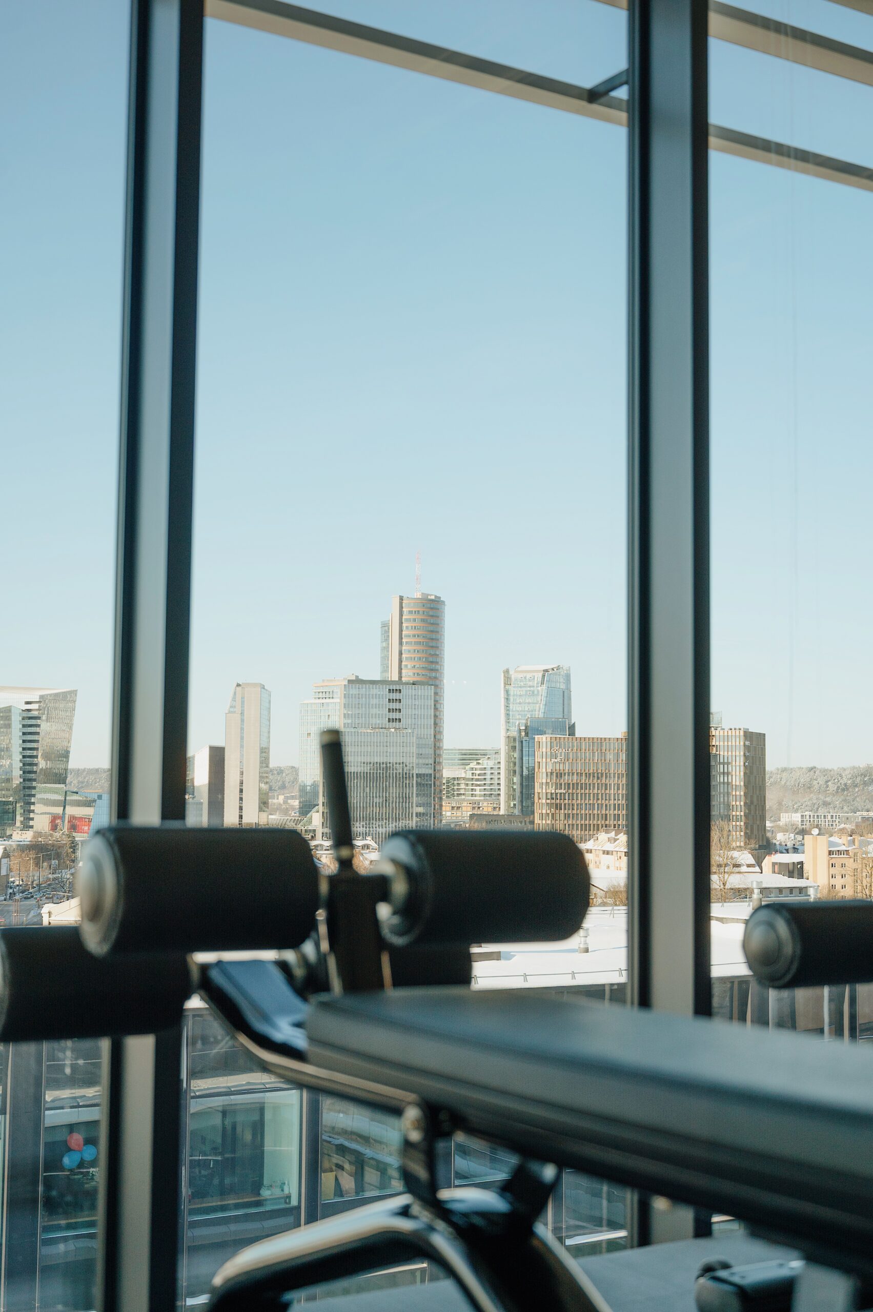 All of this takes place in a calm, considered environment overlooking Vilnius. The interior design—bright, modern, and understated—sets the space apart from more conventional sports clubs, creating an atmosphere that is open and unforced.