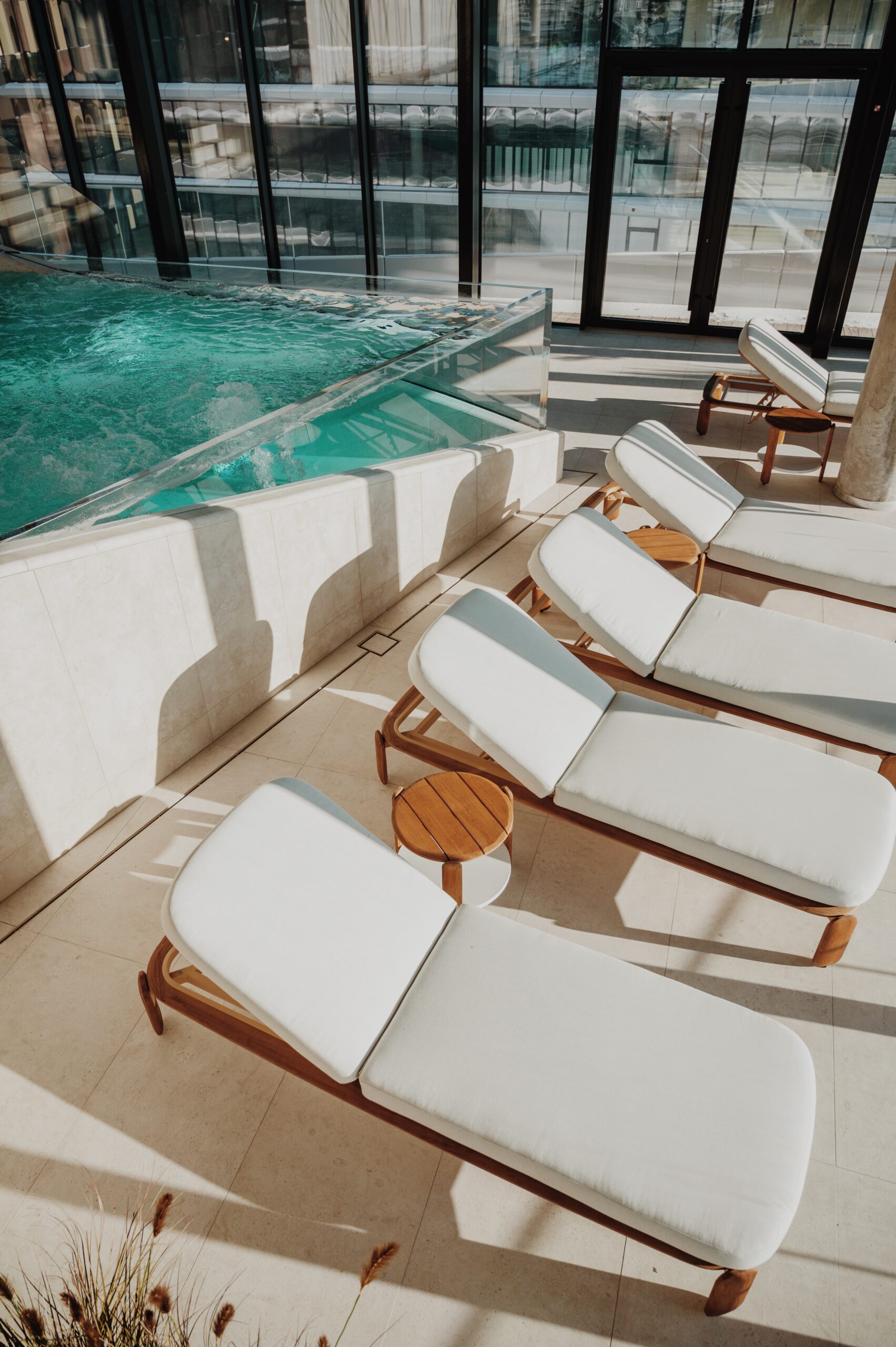 The movement facilities themselves are comprehensive and well-equipped. Life Fitness machines cover all major muscle groups, alongside 26 cardio machines positioned with views toward Gediminas’ Tower. More than 45 group sessions take place each week, offering a range of options that let people choose how they move, depending on their needs and energy levels. A 25-meter swimming pool, saunas, and a jacuzzi complete the experience, allowing physical activity to transition into rest and recovery.